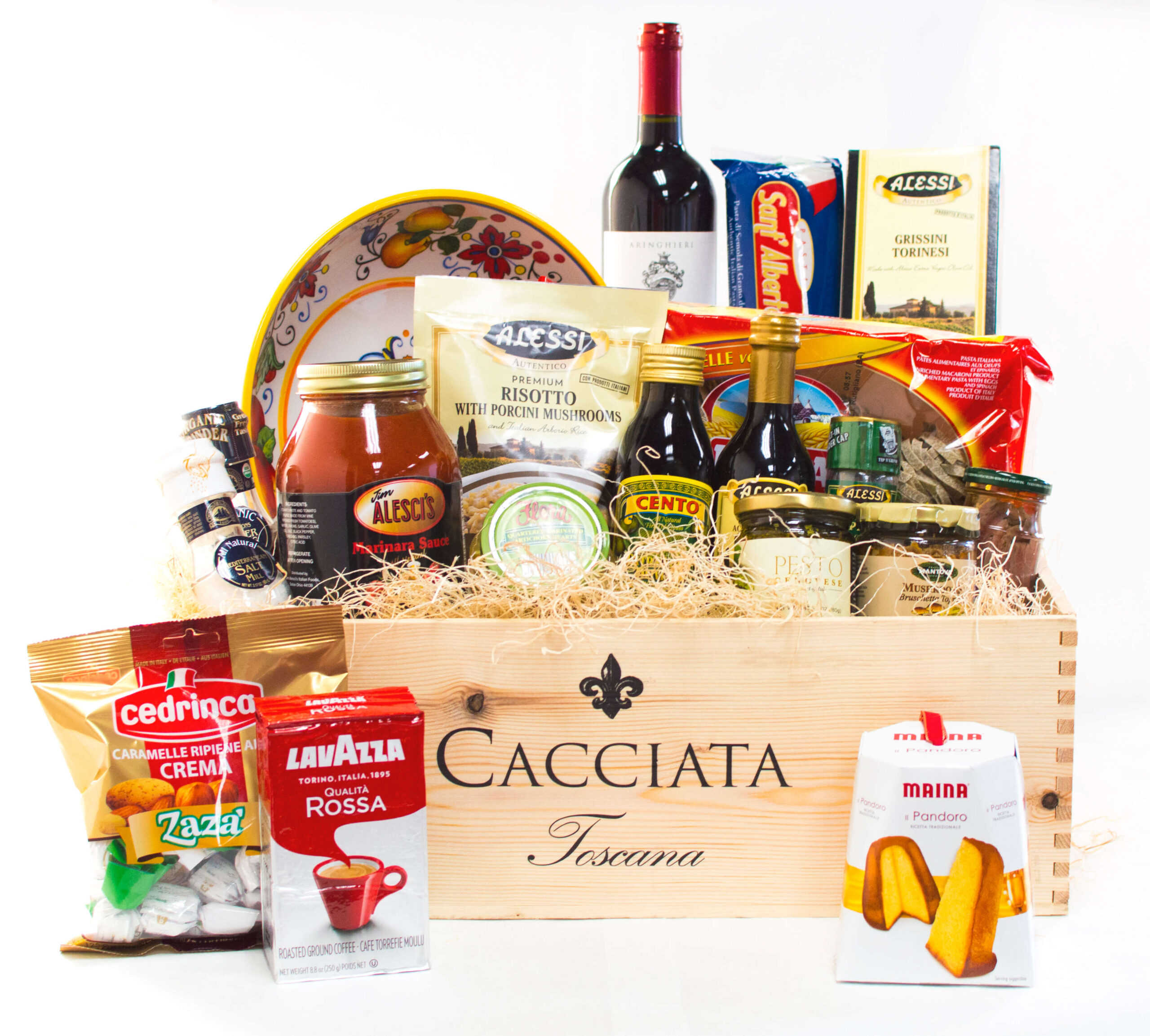 $125 – Give the gift of timeless Italian flavors with our curated gift basket featuring premium olive oil, aged balsamic vinegar, crispy crackers, and more gourmet delights. Perfect for food lovers and home chefs alike, it’s a thoughtful way to share the taste of Italy.